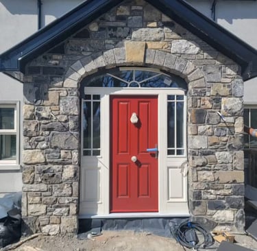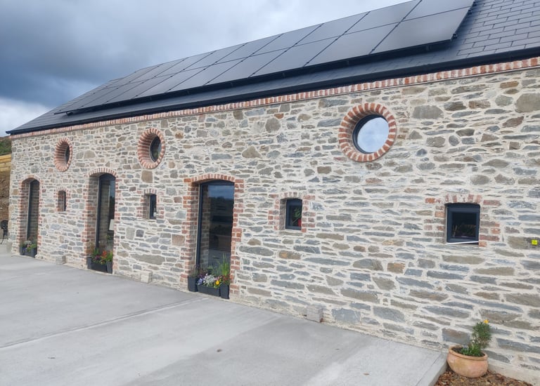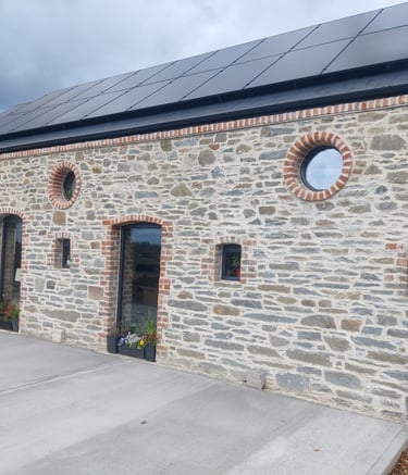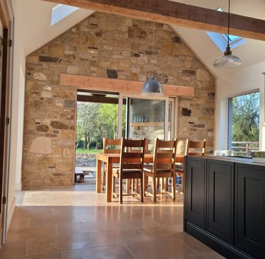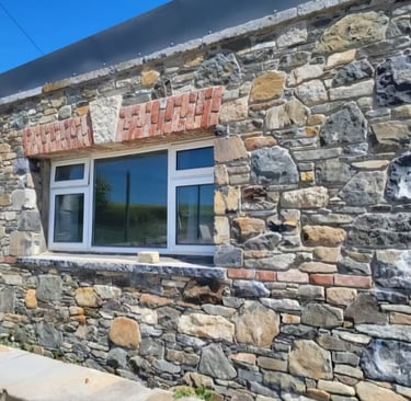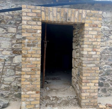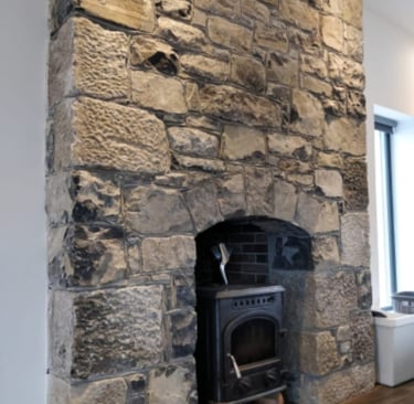 Historic Stone Reborn! This stunning renovation utilized salvage sandstone building stone to turn a derelict ruin into a beautiful, sustainable, and modern structure, preserving its timeless character.